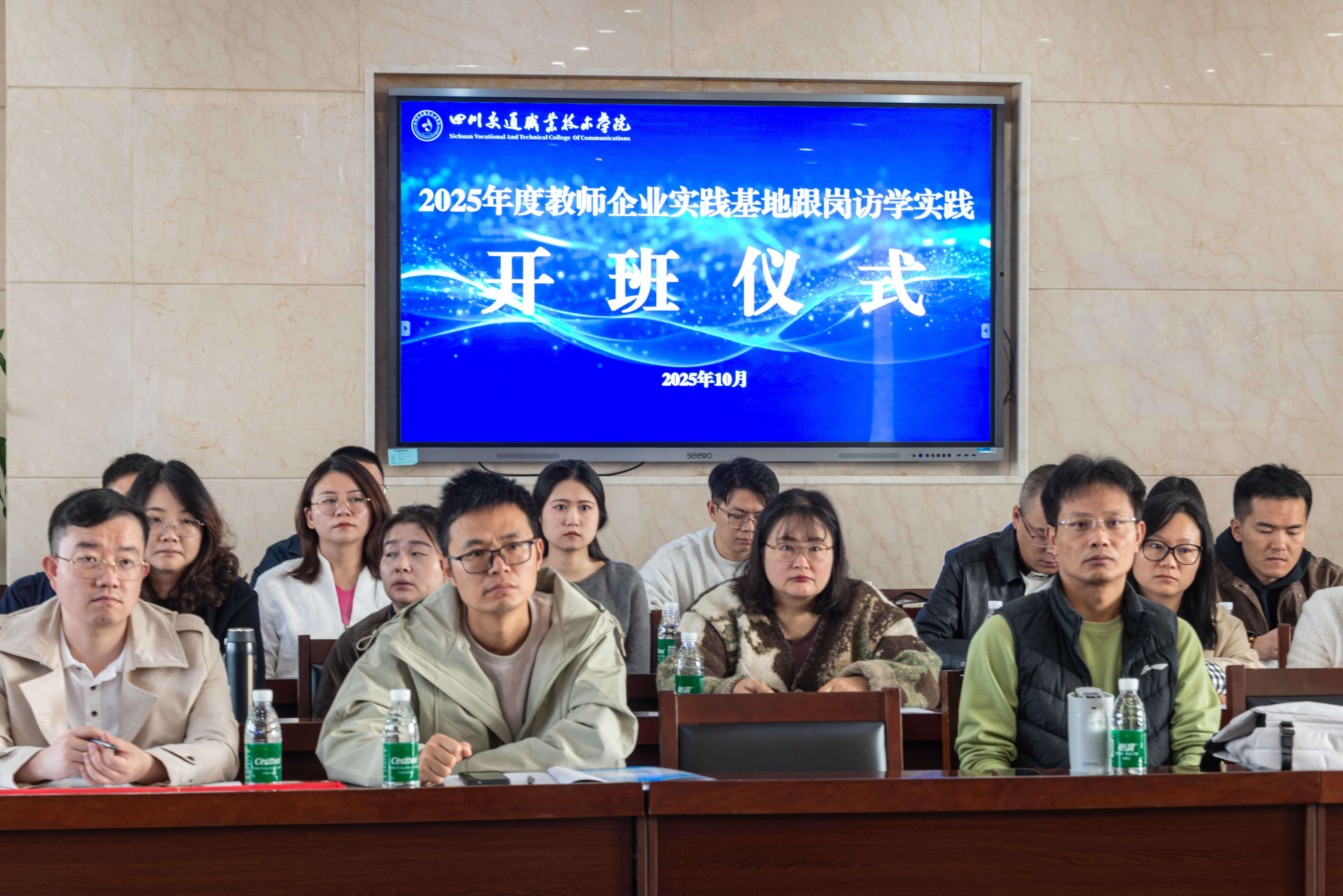 2025年10月27日,四川省2025年度职业院校教师素质提高计划——高职教师企业实践项目培训班,在四川交通职业技术学院开班。来自全省26所高职院校的30名“双师型种子教师”参训,培训为期28天,建筑类高职教师企业实践项目,由省教育厅主办、四川交院承办,该企业实践项目培训将以 “院校专家+企业骨干”“理论+实践”模式提升教师能力。此次开班仪式上学院副院长刘玉荣教授出席并致辞,建筑工程系主要负责人及教学统筹服务团队成员参加开班仪式。