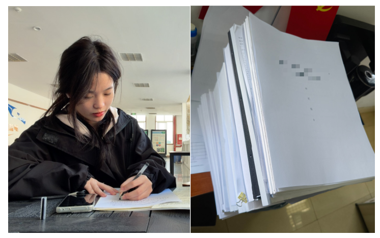 学习上,她始终保持着清醒的规划和持续的投入。大一上学期,她以3.35的绩点起步,并主动开始积累英语词汇,为专升本和英语四六级考试做准备。进入大一下学期,她更加专注于专业学习,绩点显著提升至3.77,展现出极强的学习韧性与自我管理能力。除了专业课程,她还积极探索兴趣领域。因在二课活动中对手工艺产生浓厚兴趣,她选修了《手工艺传承与创新》课程,并以满绩点的优异成绩完满结课,体现出她在跨领域学习中的热情与潜力。