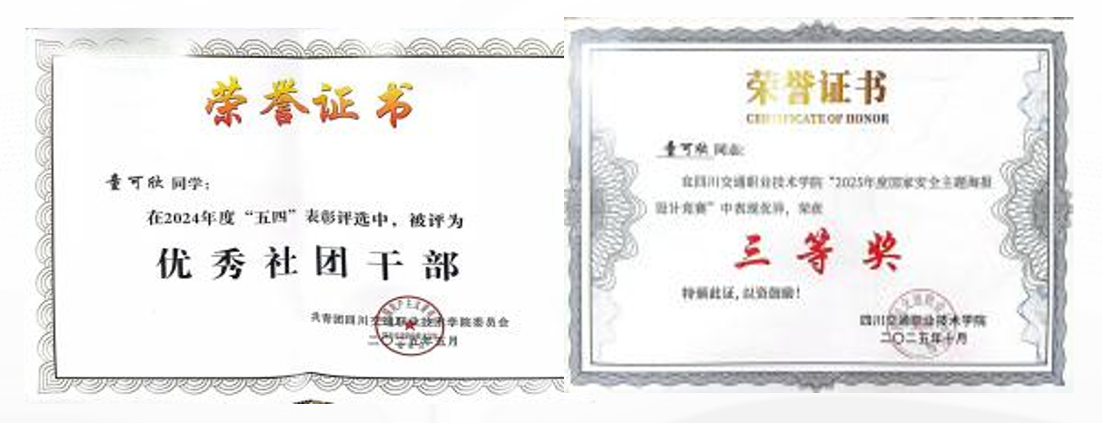 她积极参加各类竞赛和文体活动,在宿舍文化节篮球接力赛中获团队一等奖,国家安全知识竞赛海报绘制中获三等奖。大二时担任造价咨询协会部长和学院助教,锻炼了组织与沟通能力,获得优秀学生干部、学院一等奖学金和国家励志奖学金。面对未来,她目标清晰、步履坚定。她计划在大学期间考取英语四六级、计算机二级、普通话等多项技能证书,为专升本之路筑牢基础。她始终相信,扎实的专业知识、丰富的实践经历与持续的自律努力,是走向更广阔天地的坚实阶梯。