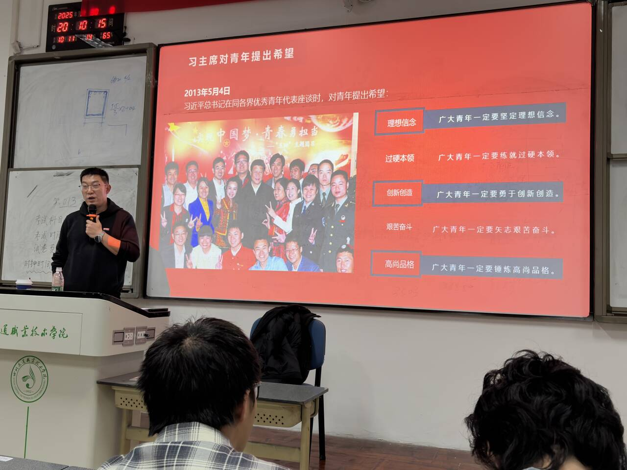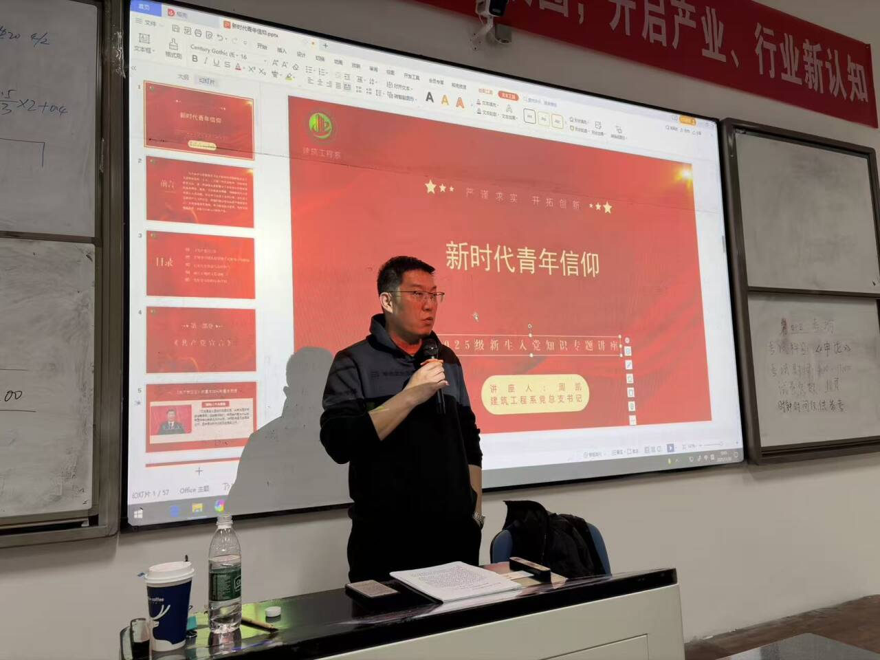 2025年11月30日,建工系“青春心向党·启航新征程”入党启蒙教育活动在励学楼211教室举行。本次活动由周凯书记主讲,建工系大二优秀团员及全体大一新生参与,旨在抓住青年三观形成关键期,通过党的基本知识与路线方针政策教育,帮助青年学生筑牢信仰之基、补足精神之钙。