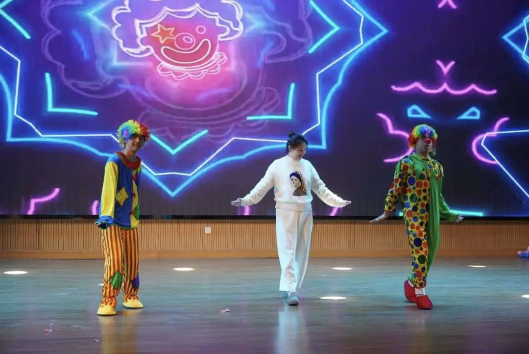 作为晚会压轴的“功成有我 青春筑梦”篇章,将个人成长与时代使命紧密相连。主题视频《见证青春 功成有我》通过奋斗者的鲜活面孔与重大工程成就的画面切换,瞬间点燃新生的责任感与使命感;辅导员戴莲菲与同学们自办自演的小丑角色的趣味互动,打破了师生间的距离感,传递出“师生同行 共筑梦想”的温情;最后,全场共同唱响《稻香》,熟悉的旋律在闪烁的荧光海中回荡,为晚会画上圆满句号,也象征着新生们温暖而坚定的大学新征程正式启航。